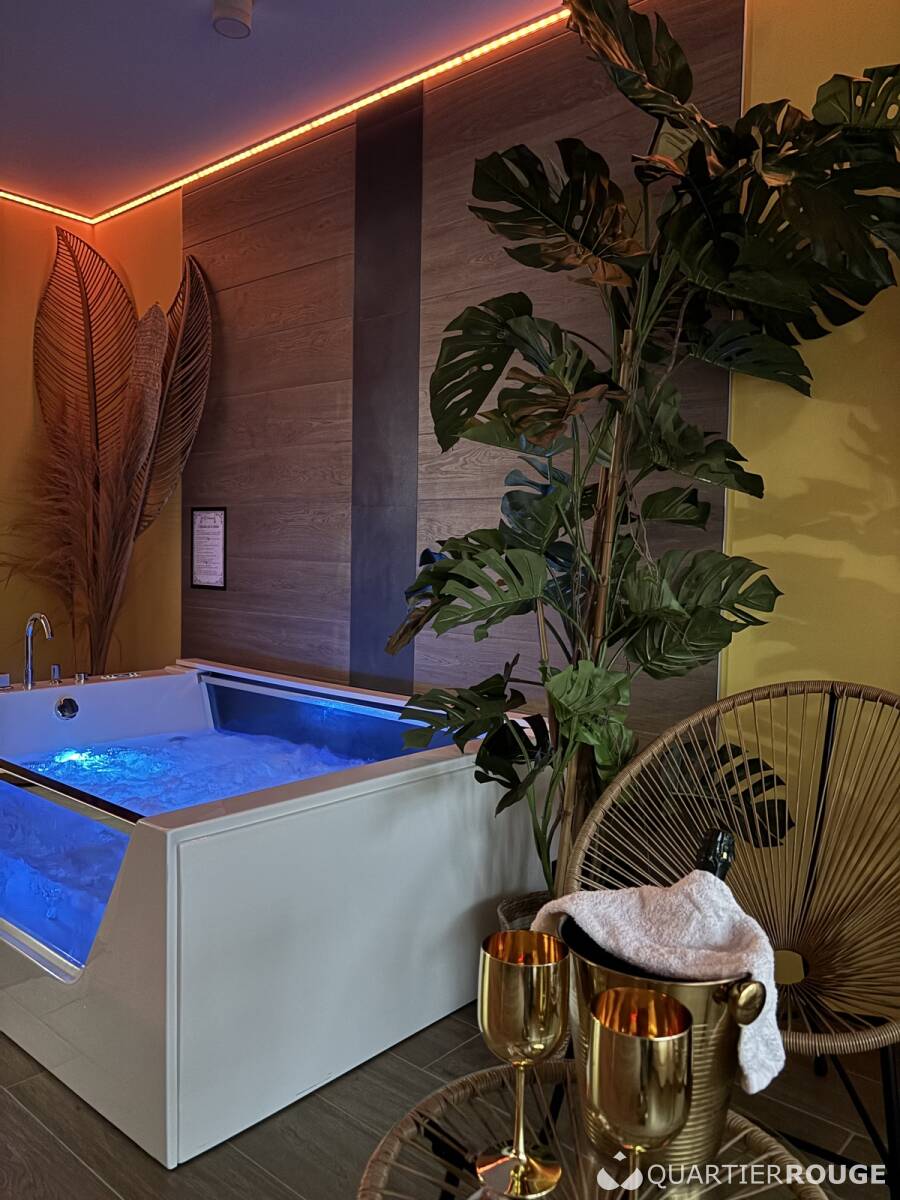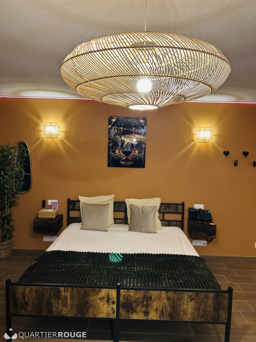 Découvrez un lieu unique avec 8 chambres à thèmes, ainsi que 3 suites d'exception, dont 2 équipées de balnéos et sauna, et une suite Donjon pour une expérience inoubliable.