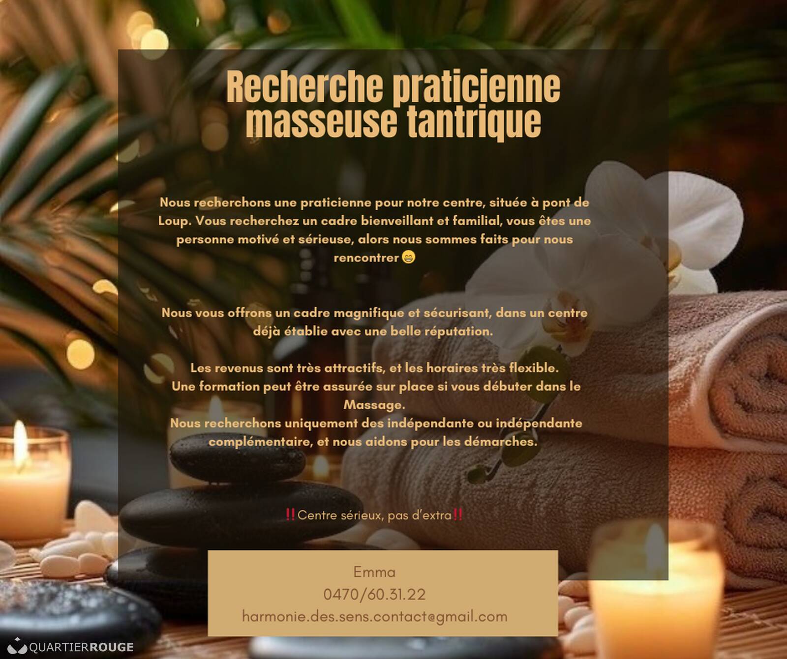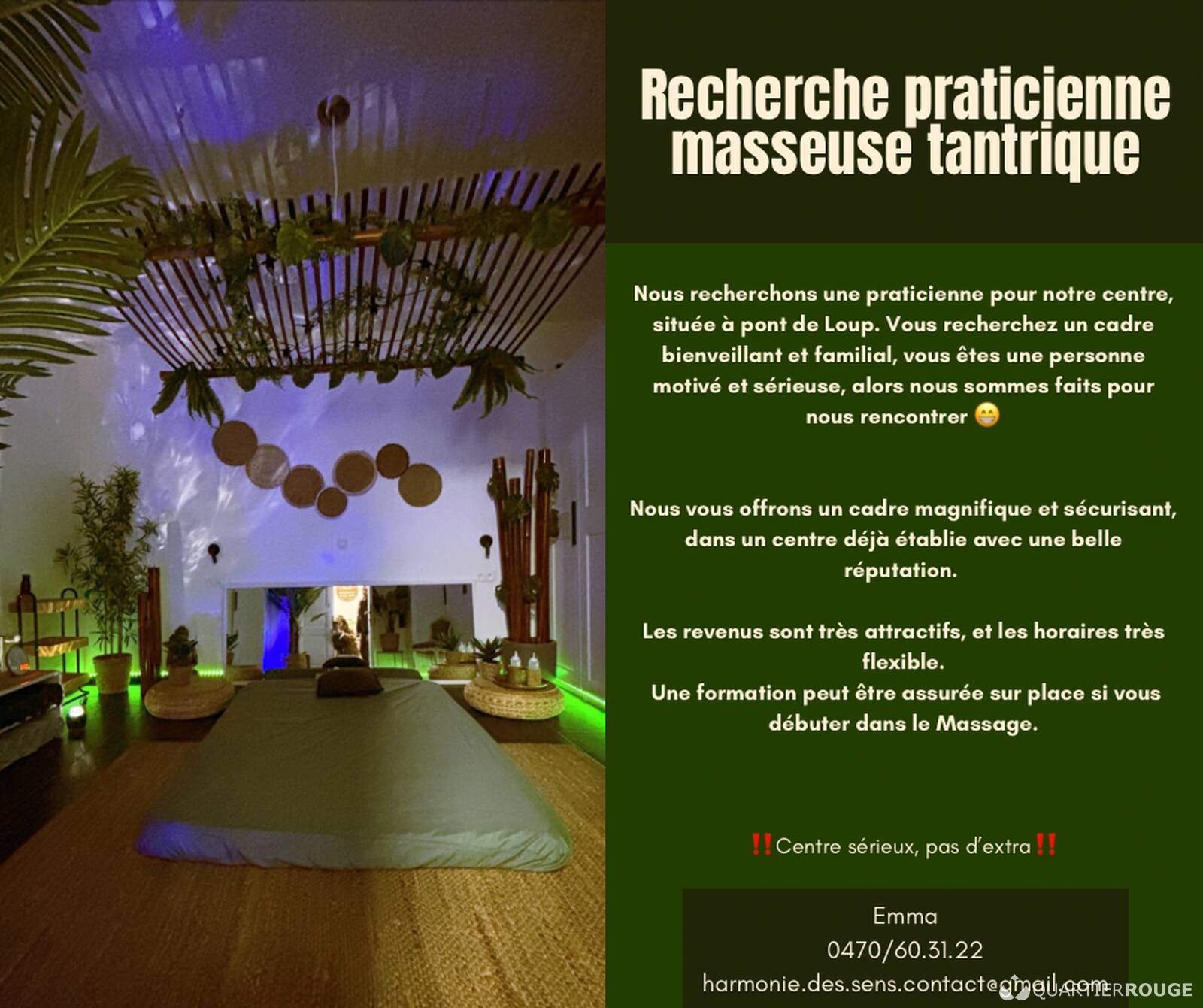 Notre petit coin de paradis s’adressent aux masseuses, souhaitant collaborer dans un salon sérieux, où règne la bonne humeur, le respect et l'entraide.