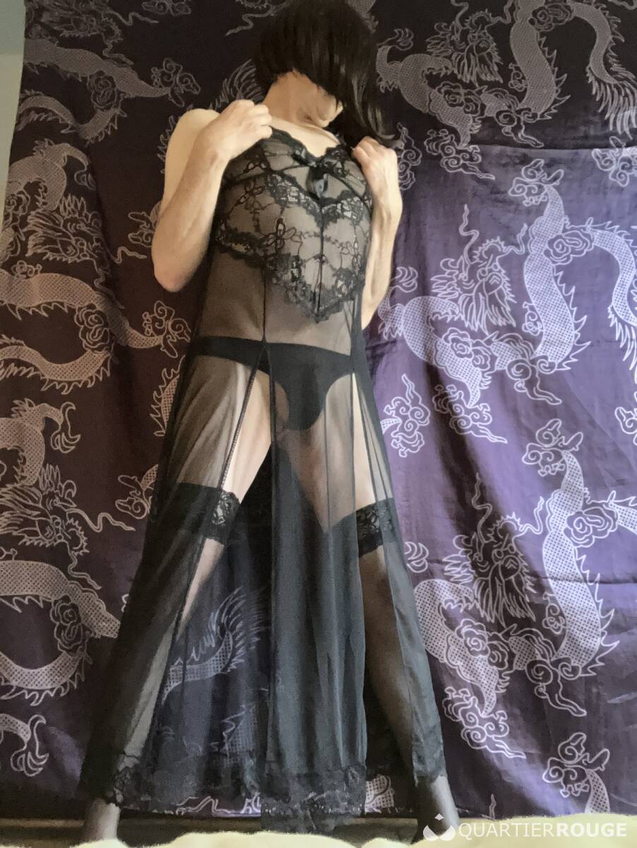 Je peux recevoir en robe, porte jarretelle, bas, string, talons, et perruque... ou me déplacer ?