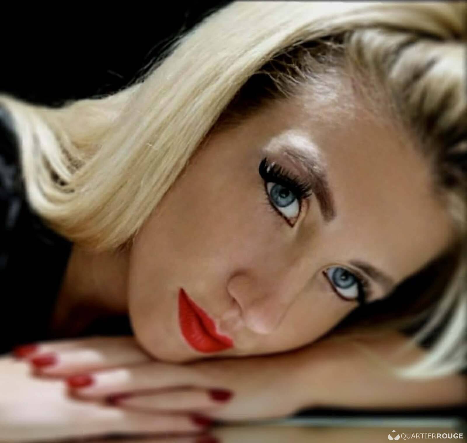 Mes courbes harmonieuses accompagnent naturellement le mouvement, et mes yeux bleus perçants captent votre regard pour créer une connexion subtile dès les premiers instants.