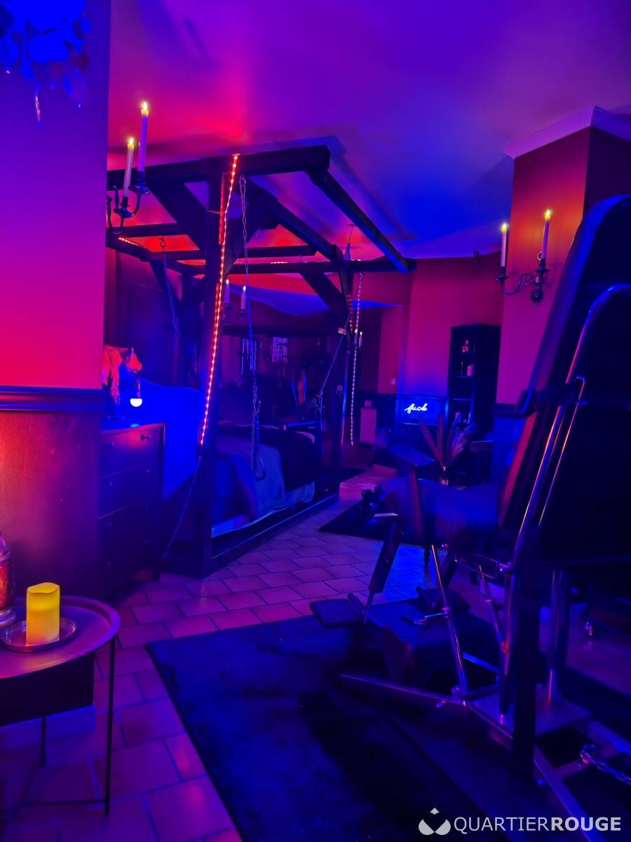 Je te reçois dans mon boudoir élégant et raffiné. Si toutes les conditions sont remplies, je t'ouvre les portes de mon donjon entièrement équipé.