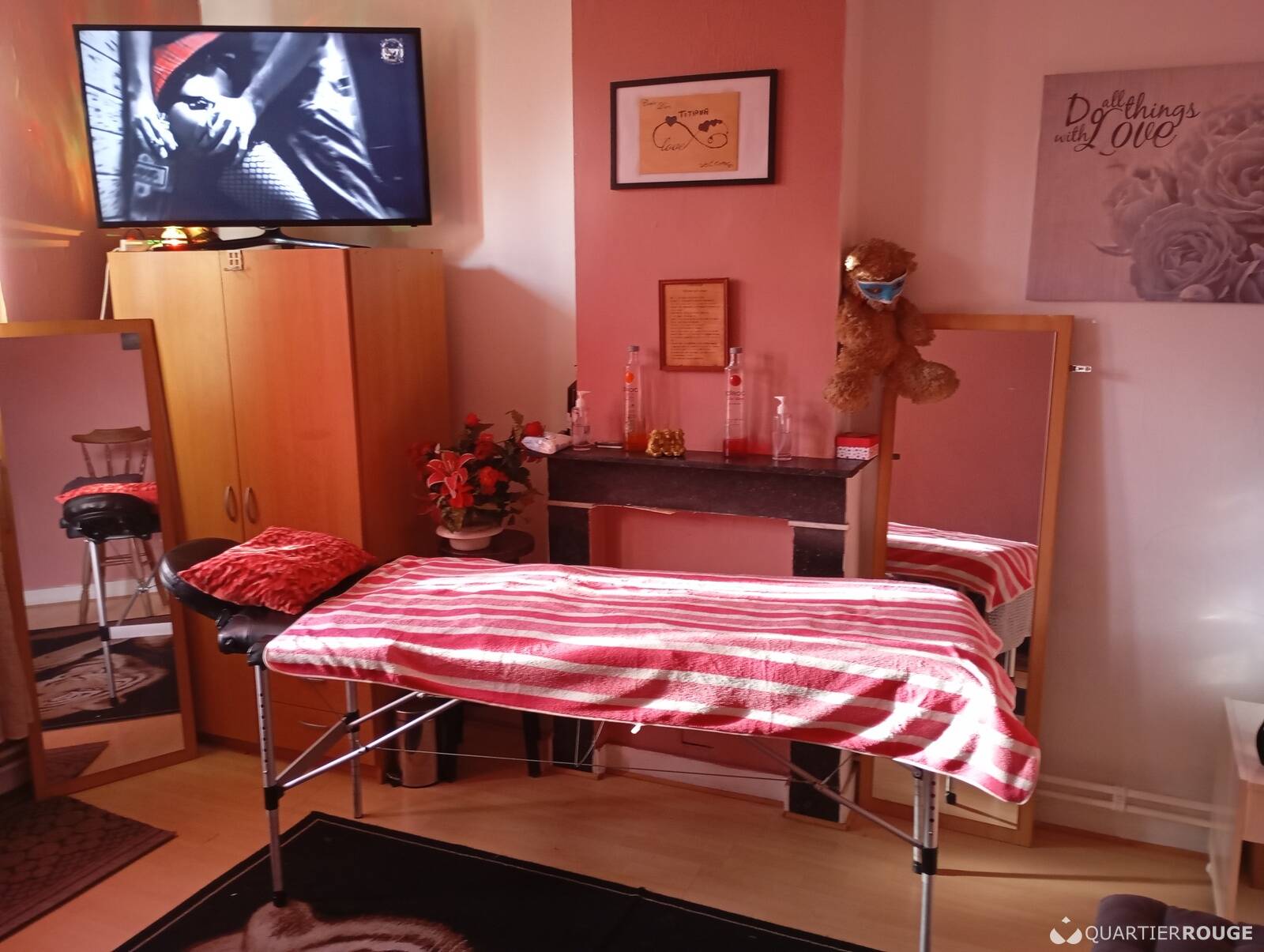 Bonjour et bienvenue sur ma page. Je reçois à mon domicile à Bassenge et je vous propose différentes sortes de massages qui sont des ouverture vers l’ultime plaisir sensoriel et personnel. 1h de relaxation et de décontraction pendant lesquelles je vous ferai vivre l’instant présent avec douceur et doigté, il s'agit de prendre conscience de toutes les parties de son corps, sans jugement ni projection, afin de mieux ressentir toutes les sensations et faire circuler le bien et être loin de vos soucis quotidiens. C’est en toute discrétion que je vous accueille au sein de mon espace cosy pour vous faire vivre une expérience inoubliable de massage érotique, sensuel ou musculaire selon le besoin de votre corps car, il parle à mes mains.