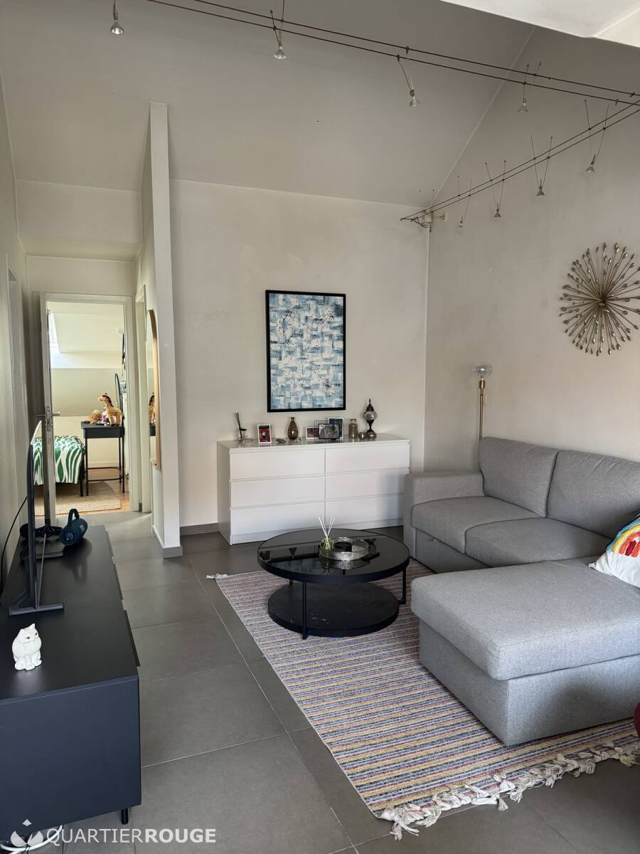 Je vis seul dans un appartement confortable avec garage.
